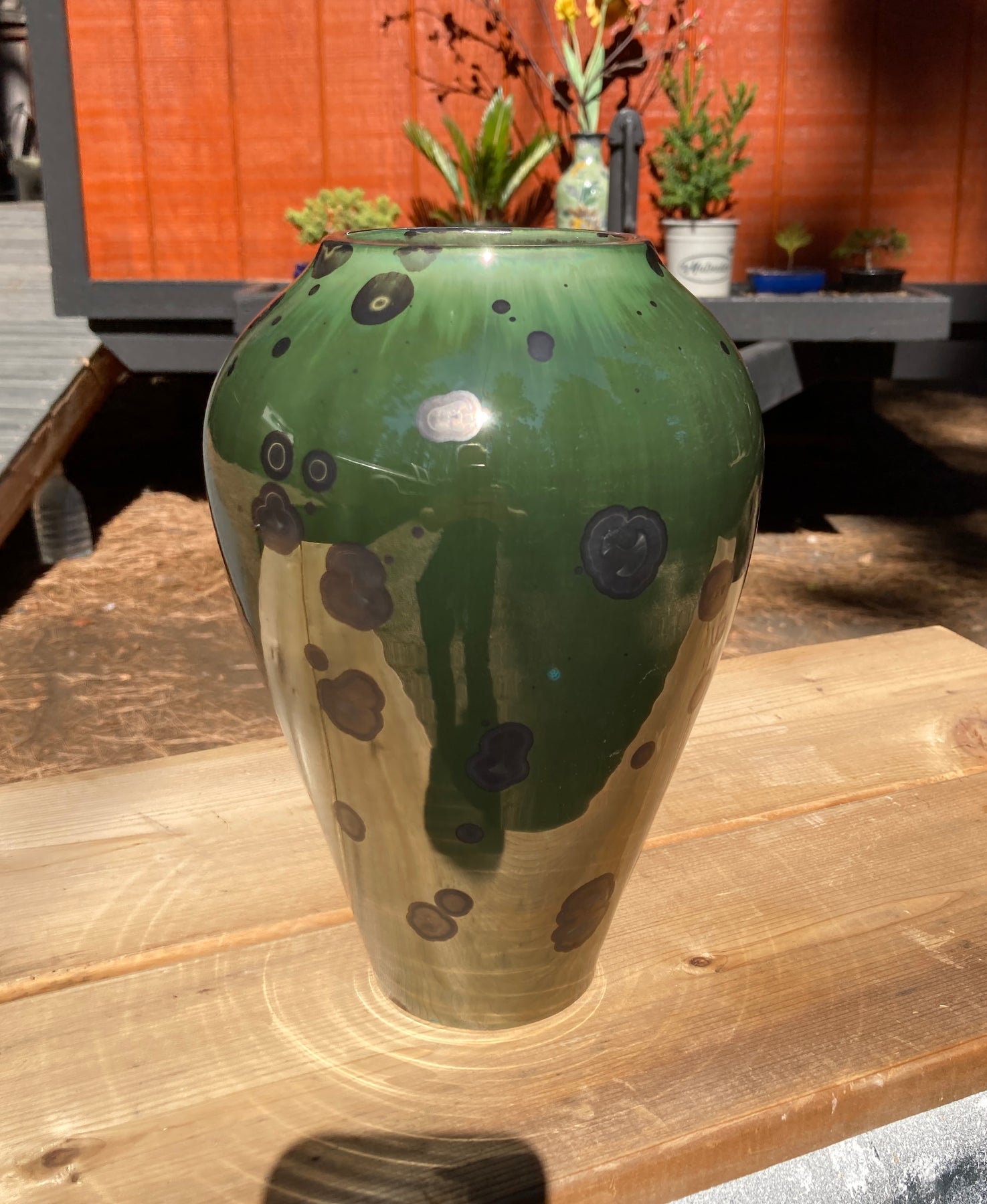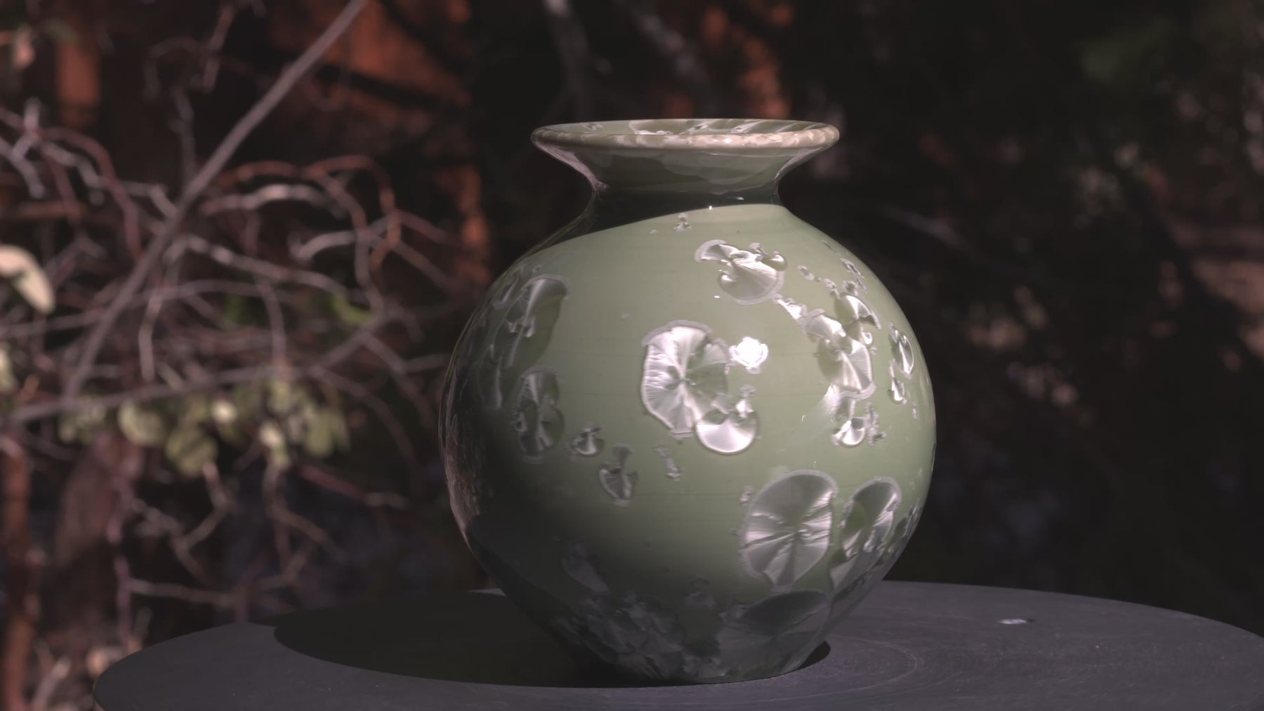 A deep, forest-green porcelain vessel enveloped in flat, matte-black crystalline formations (9.5"x 6.5") — the debut of Patrick McIntyre’s signature glaze. Developed through years of experimentation, this exclusive formula achieves what few crystalline artists dare to claim: reliable repetition in the kiln without sacrificing mystery or depth. The surface evokes moss-covered stone under shadow — elegant, masculine, and quietly powerful. Each firing yields subtle variations, yet every piece carries the same disciplined chemistry and timeless composure.